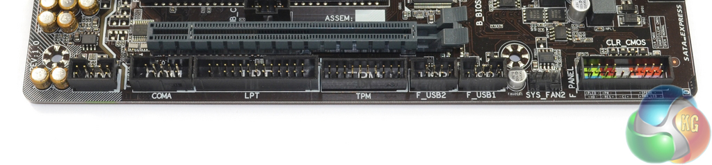 Three SATA-Express ports derive from the Z170 chipset's flexible IO connections. Gigabyte rates the SATA-Express transfer rate for up to 16Gbps by utilising two of the chipset's PCIe 3.0 lanes. SATA-Express has been given a new breath of life thanks to it being the foundation for a front panel USB 3.1 device, as we saw ASRock deploy.