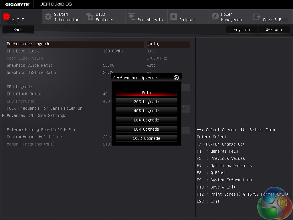 Gigabyte includes a number of Performance and CPU Upgrade pre-set profiles. The CPU Upgrade profiles worked well with our Core i7-6700K chip and used sensible voltage settings.