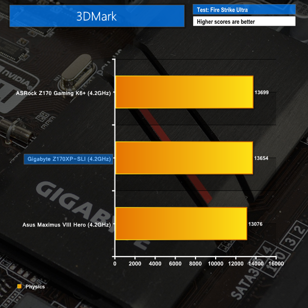 Solid performance is shown by Gigabyte's board in the 3DMark Physics and Sandra CPU arithmetic tests.
