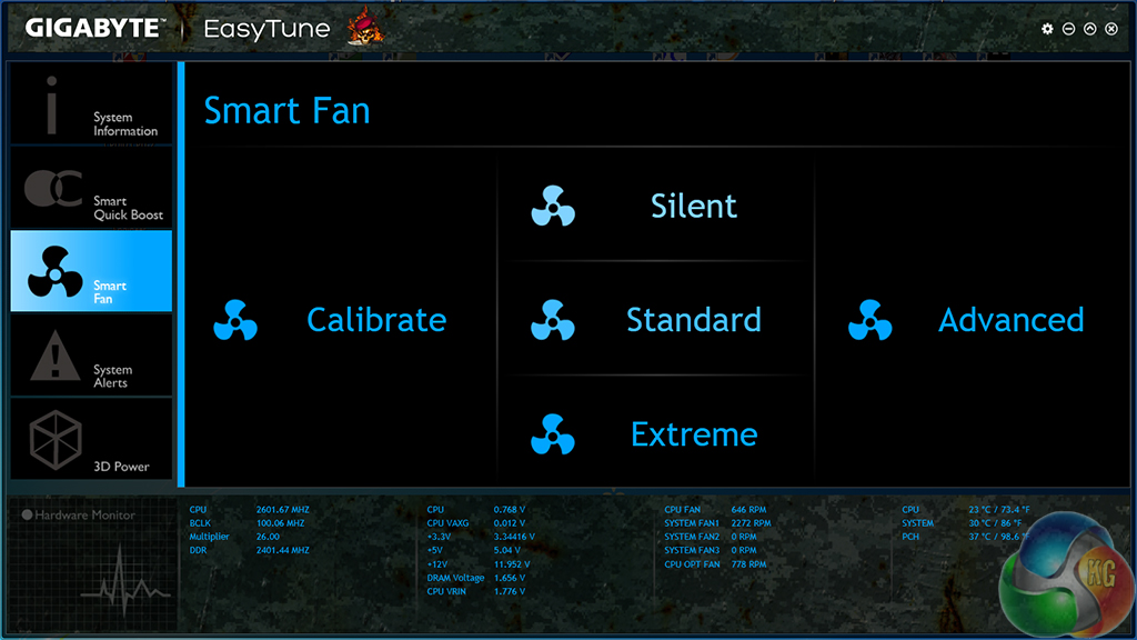 System information and fan speed settings can be tweaked via their own section in Gigabyte's software suite.