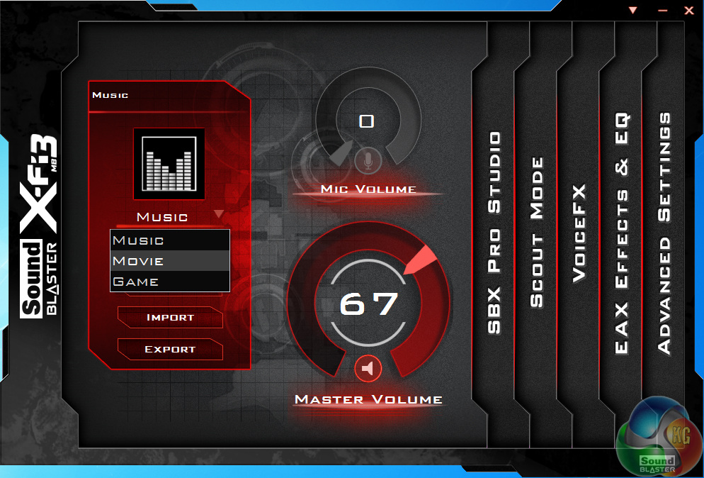 Sound Blaster X-Fi MB3 software can be used to quickly adjust audio configurations based upon the user's tasks. Different settings can be adjusted to suit one's setup and preferences.