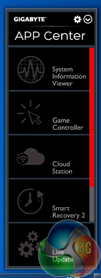 The software tools that Gigabyte provides with its Z97X-Gaming 7 are largely identical to those compatible with the Z97X-UD5H-BK. By default, the Z97X-Gaming 7 uses a red theme for its software apps.
