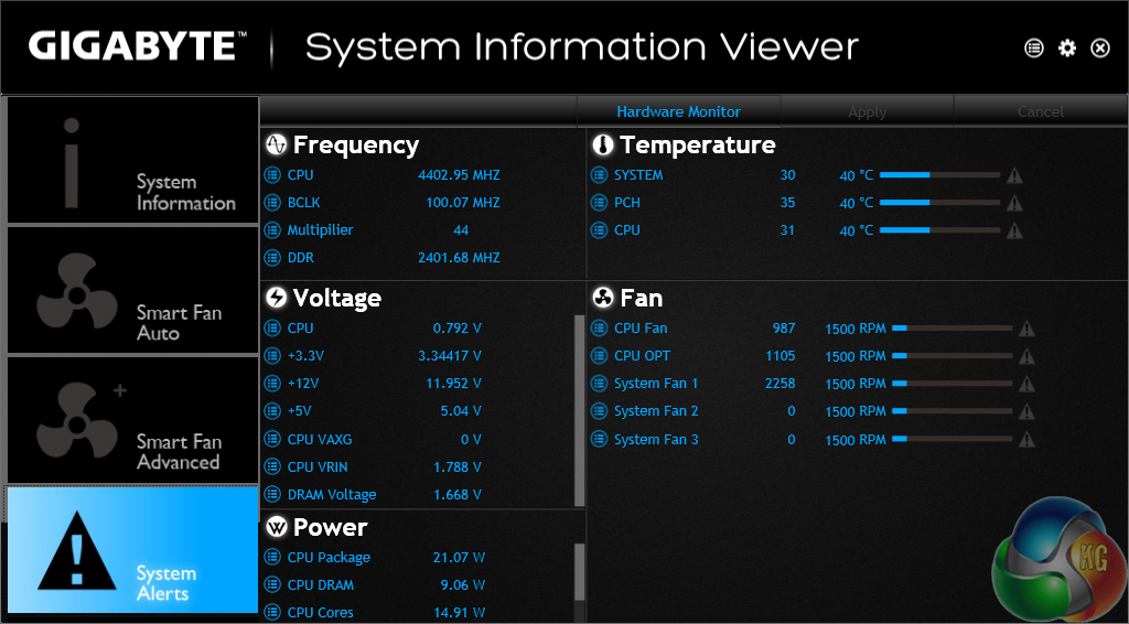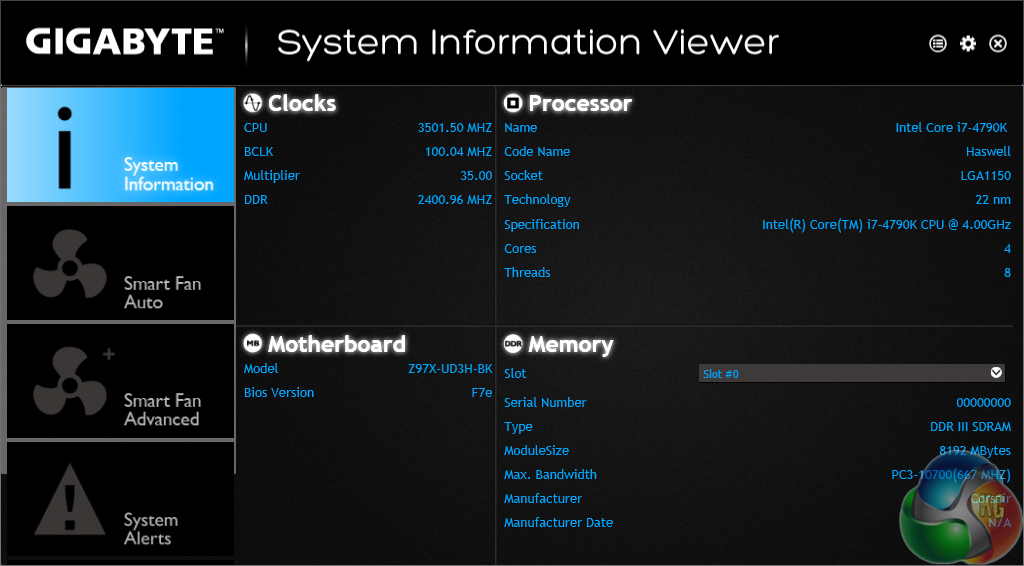 System information and fan speed settings can be tweaked via their own section in Gigabyte's software suite.