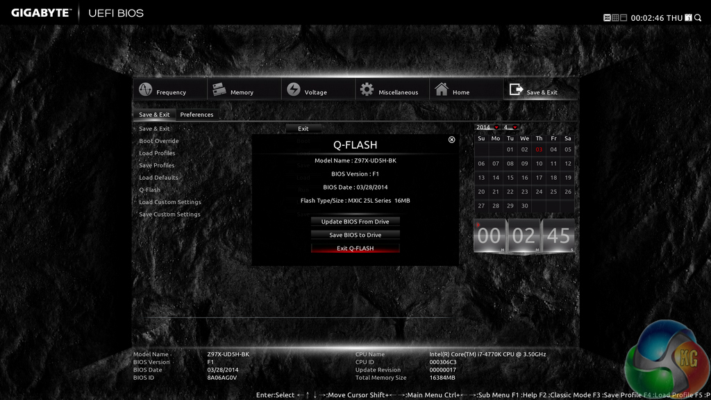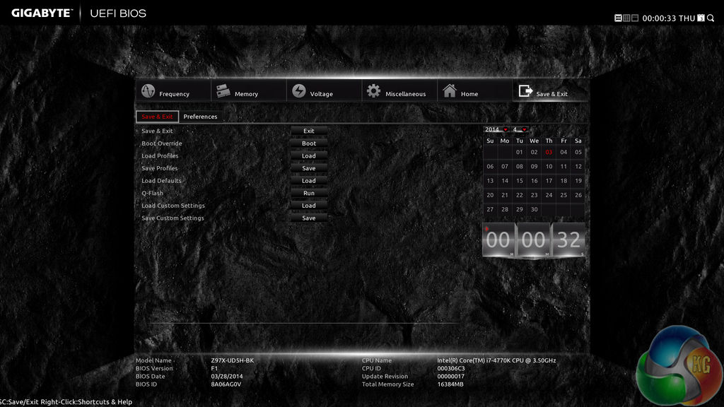 Control adjustments for the UEFI and the Q-Flash BIOS updater can be accessed via the Save & Exit section. I would prefer Gigabyte to have given the many of the control parameters their own section titled ‘Settings' to make them easier to spot in the UEFI. Save & Exit typically implies saving and exiting, not adjusting control options and updating the BIOS.