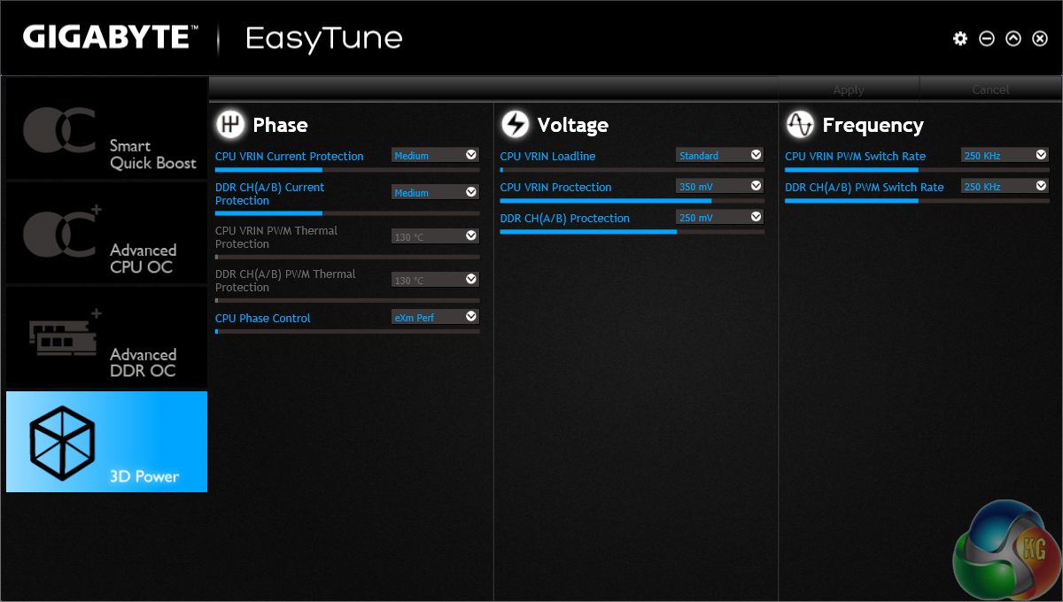 Gigabyte's EasyTune software allows users to view and adjust frequency, voltage, and other overclocking-related settings in an OS environment. Pre-set frequency profiles can also be selected.
