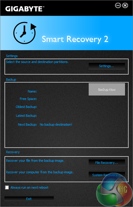 Smart Recovery 2 is Gigabyte's backup manager, while Smart Time Lock allows users to set times for when their system can be operated. The latter feature could be particularly useful to semi-professional users who demand an extra level of security.