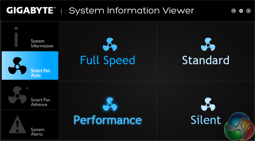 System information and fan speed settings can be tweaked via their own section in Gigabyte's software suite.