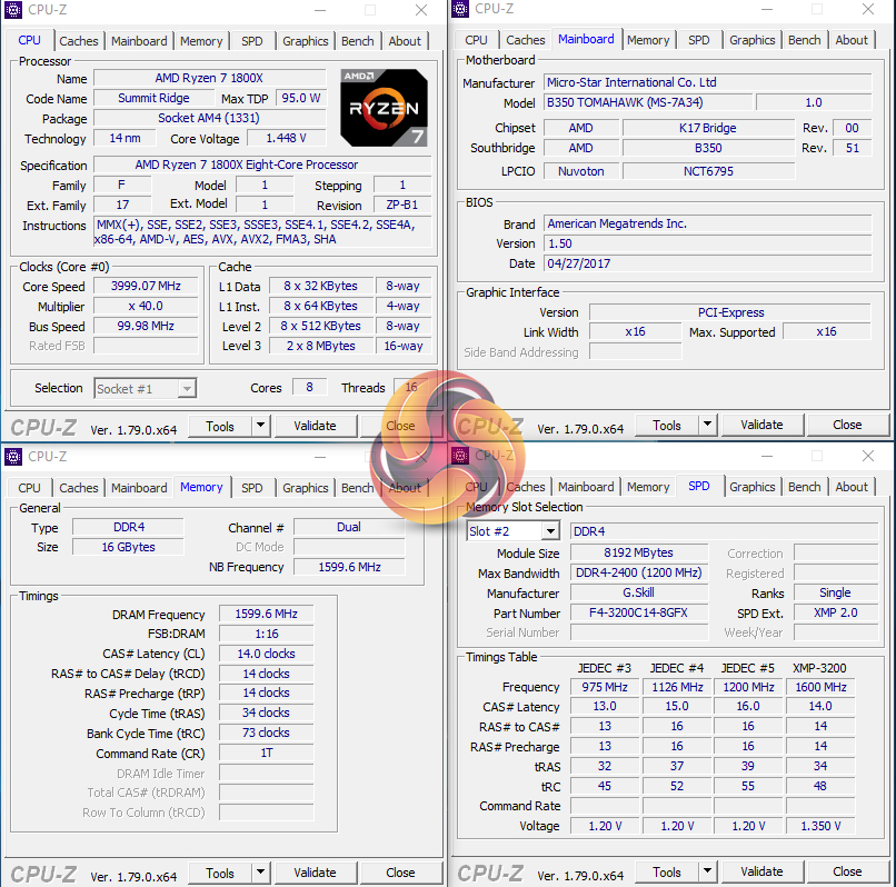 Our chosen settings saw MSI's B350 Tomahawk taking our 1800X to its 4.05GHz limit with around 1.40V. The Mode 4 LLC setting resulted in a load voltage of 1.384V, which is a decent level of accuracy for this calibre of motherboard and did not negatively impact stability.