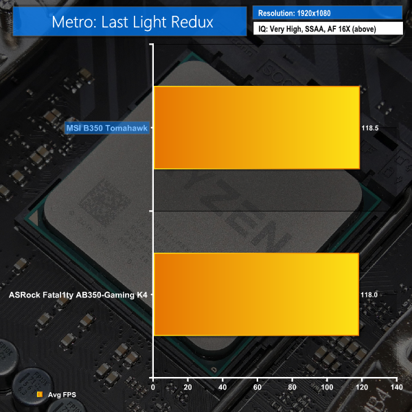 Despite its age, Metro: Last Light Redux remains a punishing title for modern computer hardware. We use the game's built-in benchmark with quality set to Very High, SSAA enabled, AF 16X, and High tessellation.