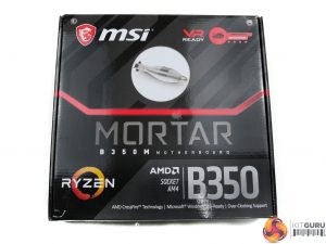 Shiny packaging houses the B350M Mortar. An annotated image and clear specifications are highlighted on the rear of the box.
