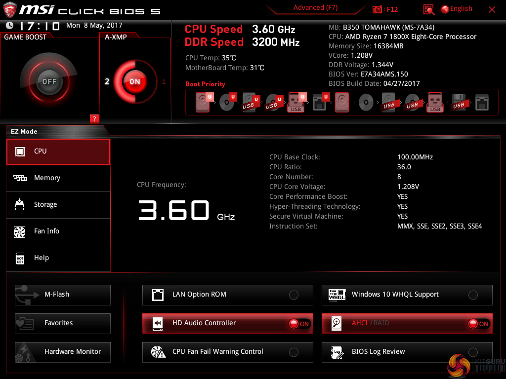 MSI’s version of EZ Mode is the best of all motherboard vendors as it features the most options but does not overcrowd the screen and remove the ease-of-use aspect. Buttons for simple A-XMP and Game Boost overclocking activation are smart moves.