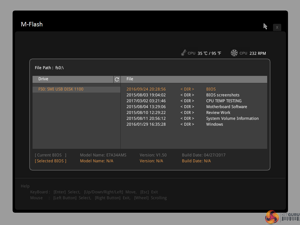 M-Flash has an ability to select BIOS profiles in USB drive folders, which is good. The tool works without hassle.