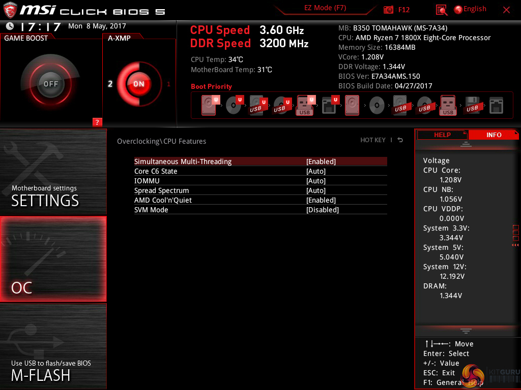 There is an adequate number of options relating to voltage, frequency, and settings adjustments and all are generally easy to find. However, if you want great flexibility for granular settings control, an X370 motherboard is the better option as the B350 models are more limited in this department. Being critical, the layout could be a little more segregated to reduce the amount of information on the single primary page.