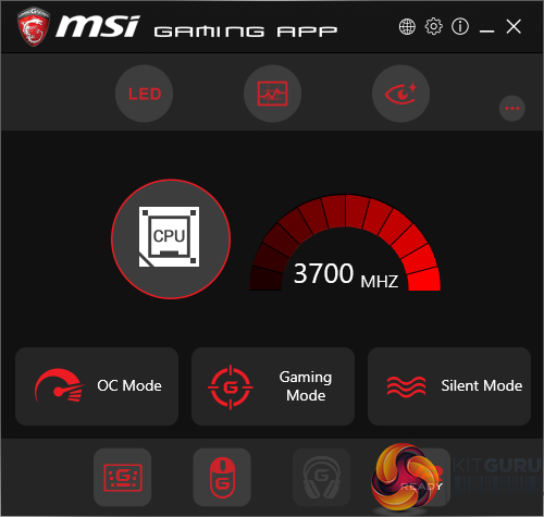Gaming App is used to control several different operating modes for the system. Three pre-set modes are available – Gaming, OC, and Silent. The OC mode applies Game Boost, as it is called in the UEFI.