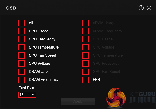 There’s an OSD to display system information but it is far less in-depth than RivaTuner that is supplied with MSI Afterburner. A monitor’s colour profile can be adjusted to reduce eye-strain or blue light. There’s also an option for remote control of the system settings.