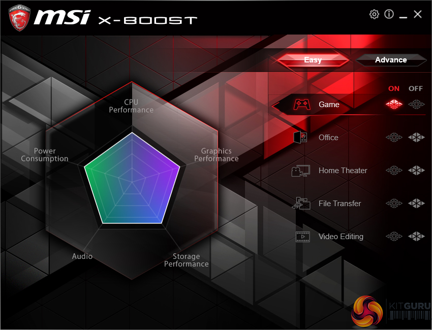 X-Boost features several system operation modes that use tweaked settings. There are presets for operations such as gaming and video editing. The game mode sets all performance metrics to a high importance while the video editing mode emphasises parameters important to such a task.