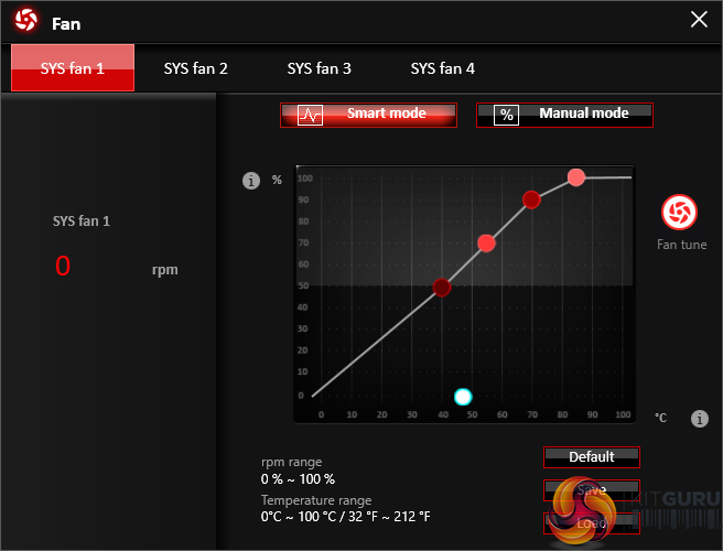 Fan tuning options in Command Center are good. There is an auto fan tuning mode which allows the system to adjust the fan speed curve to its perceived optimal design. User adjustment of the fan speed curves is also possible using a 4-point graph.
