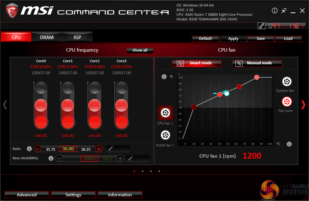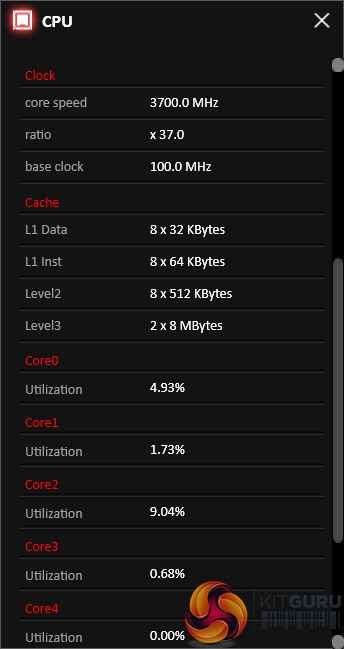 Command Center is the bread-and-butter of MSI’s OS-based software tools. Primary functionality of the system can be controlled here, including adjustment of multiplier ratios, clocks and voltages, and MSI’s Game Boost overclocking preset.