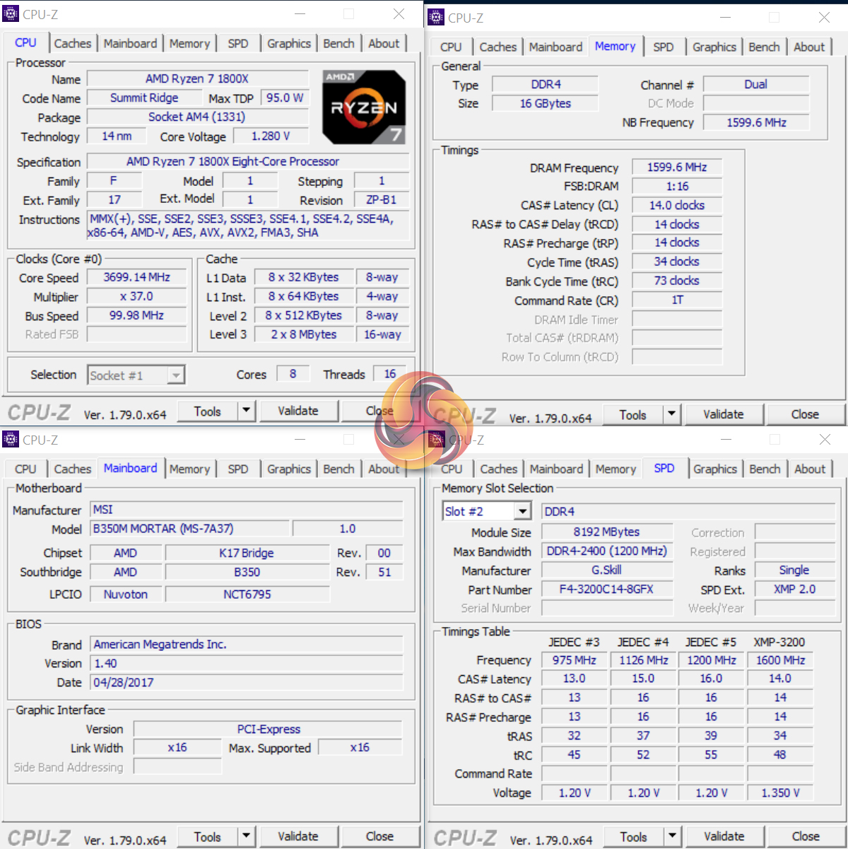 We will be outlining the MSI B350M Mortar motherboard’s performance with the Ryzen 7 1800X CPU and 16GB of 3200MHz G.Skill Flare X DDR4 memory.