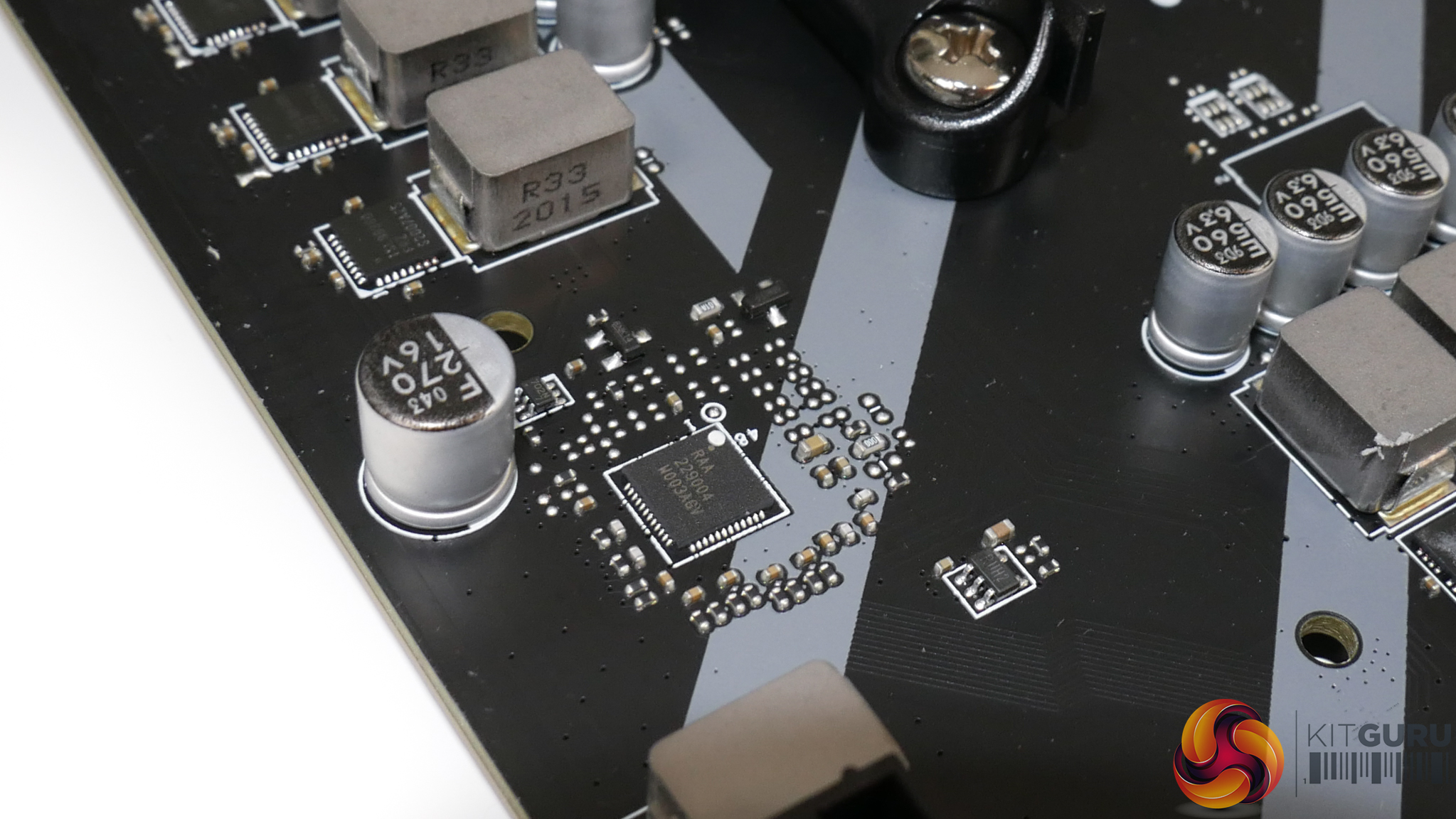 Ten Intersil ISL99360 smart power stages are used to feed the AM4 CPU. These are rated at up to 60A current output and are highly regarded, quality solutions. The SoC’s 2 power stages are also Intersil ISL99360 units.