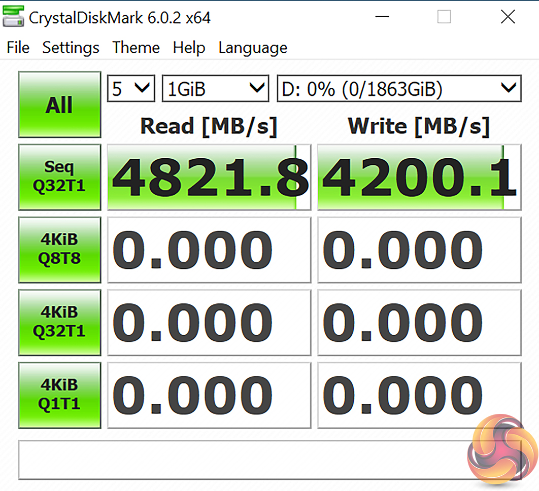 We test M.2 PCIe performance using an Aorus PCIe Gen 4 2TB SSD. This SSD uses a Phison-based PCIe Gen 4 controller.