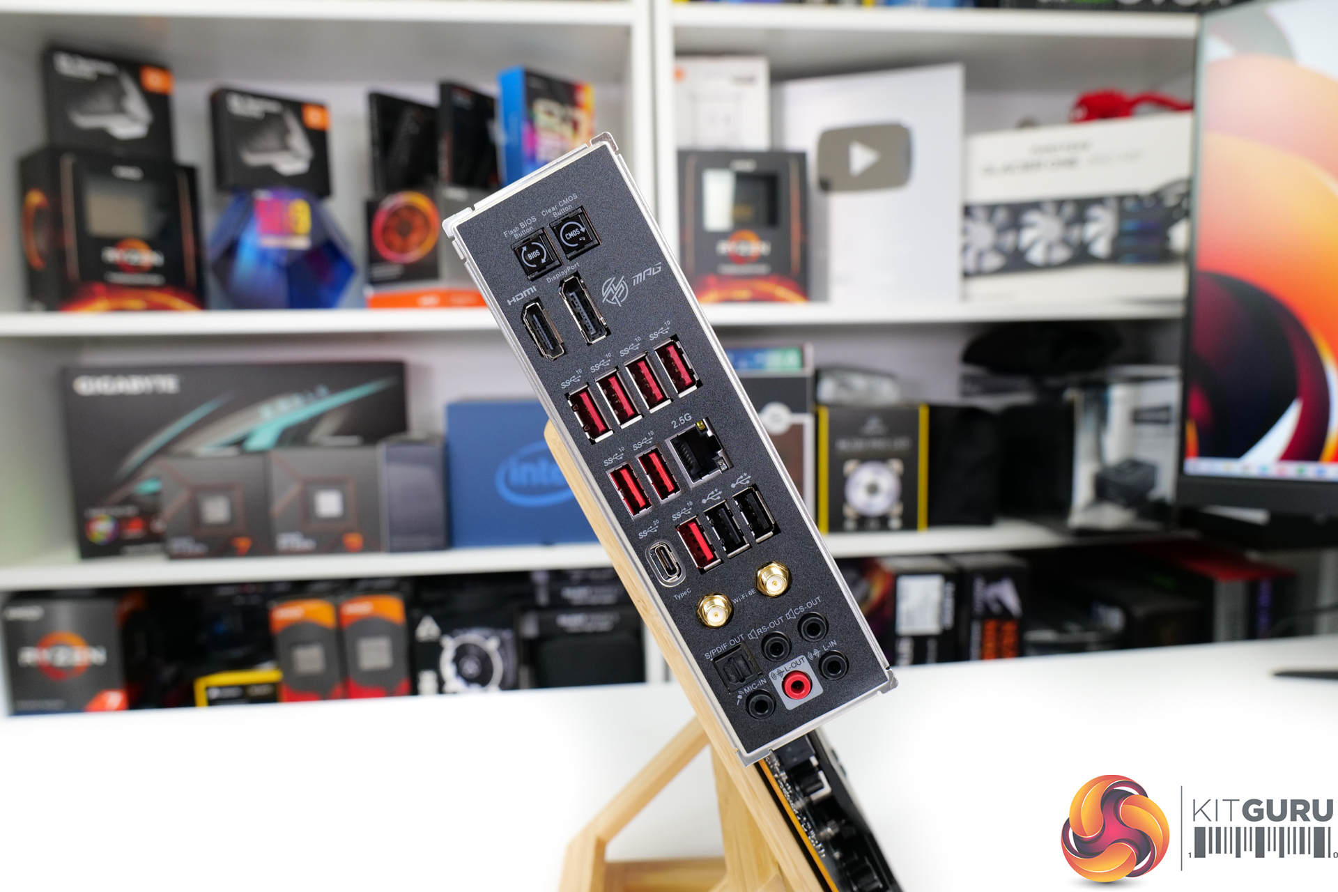 MSI provides the full complement of audio outputs in addition to full-sized DisplayPort 1.4 and HDMI 2.1.