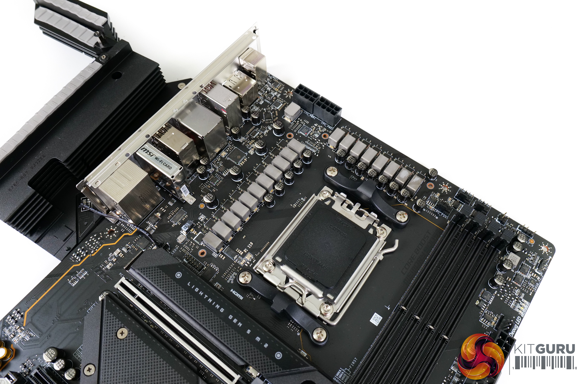 MSI also includes some debug LEDs near the 24-pin which are ideal for troubleshooting. There are no onboard buttons, though, which is fine for this board’s audience.