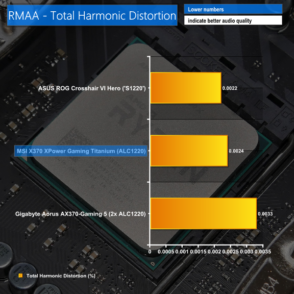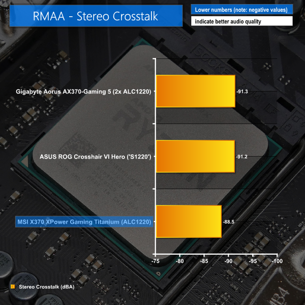 Audio performance for MSI's board is rated as ‘Excellent' by RMAA. In some of the key metrics, MSI's motherboard wasn't quite as strong as the performance offered by Gigabyte and ASUS competitors. However, the balance and retention of impressive performance throughout RMAA's test lead to a positive scoring.