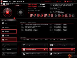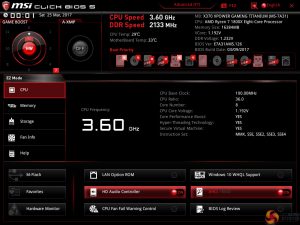 MSI’s version of EZ Mode is the best of all motherboard vendors as it features the most options but does not overcrowd the screen and remove the ease-of-use aspect. Buttons for simple A-XMP and Game Boost overclocking activation are smart moves.