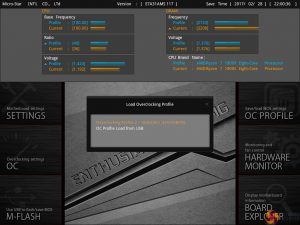 Up to six individual settings profiles can be saved to the board and more can be transferred using storage mediums. Pressing F8 and F9 on a main page of the UEFI draws down an overclocking profile tool which allows for saving and loading.