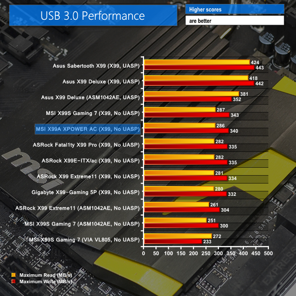 We explored the performance of MSI's USB 3.1 solution over here. We anticipate the performance to be almost identical due to the same ASMedia ASM1142 USB 3.1 chipset being used.