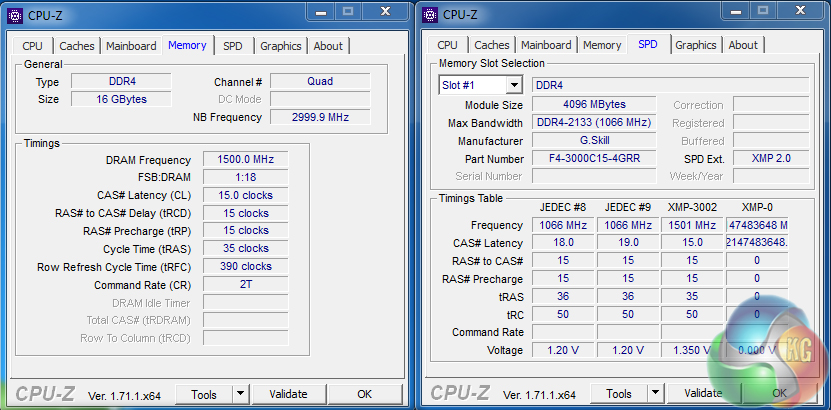 3GHz XMP on the G.Skill memory worked without hesitation. The system simple applied the 3GHz DRAM frequency after switching to the 125MHz base clock and then rebooted. CPU frequency was maintained at 3.5GHz and the CPU cache/ring ran at 3GHz.