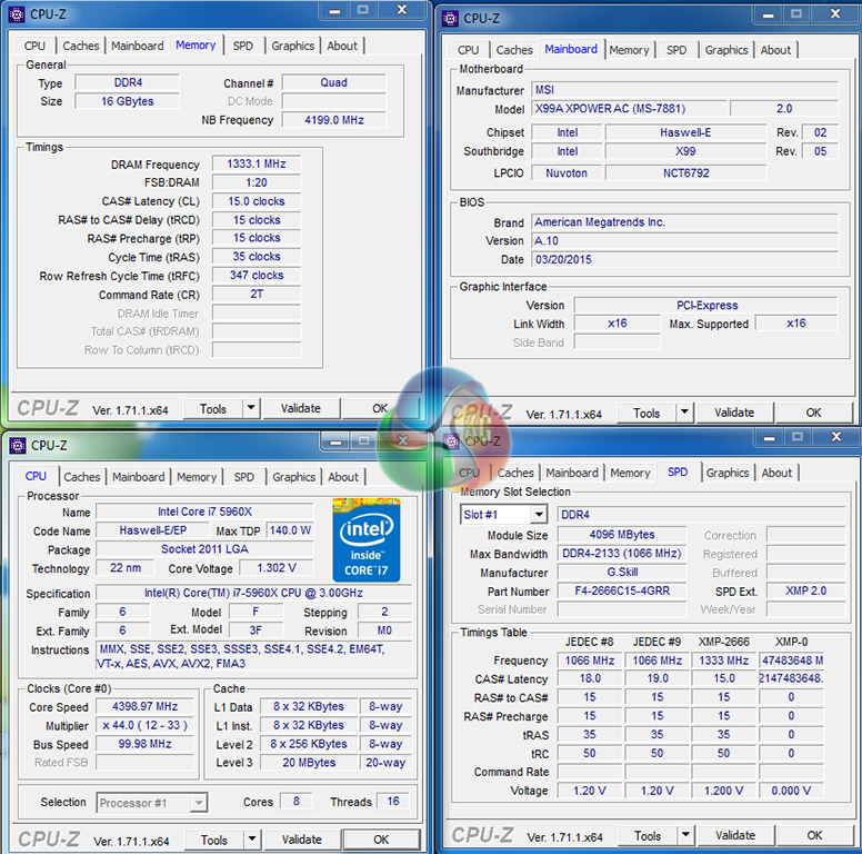 We had no problem hitting our 5960X processor's limit of 4.4GHz at 1.30V. In all honesty, 1.30V is far less than sub-zero overclockers will be putting through this motherboard. The result serves to show that MSI's X99A XPOWER AC scales across a range of overclocking frequencies, and is not simply biased towards high voltage overclocks.