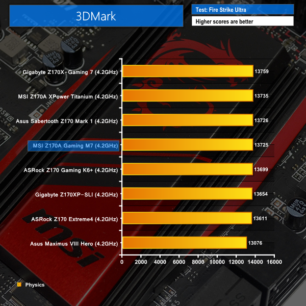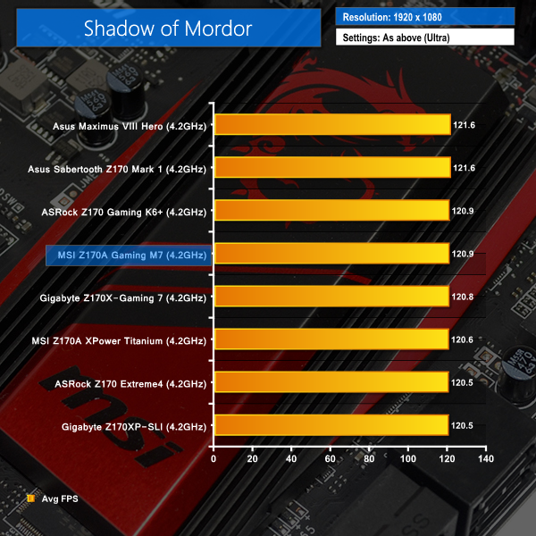 Gaming performance from the MSI Z170A Gaming M7 is solid. Performance differentials between competing motherboards are all within the margin of error of our tests.