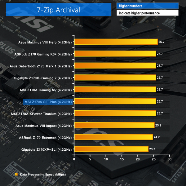 Our Handbrake and 7-Zip tests sit MSI's offering amongst the majority of other Z170 options, with no glaring performance issues being highlighted.