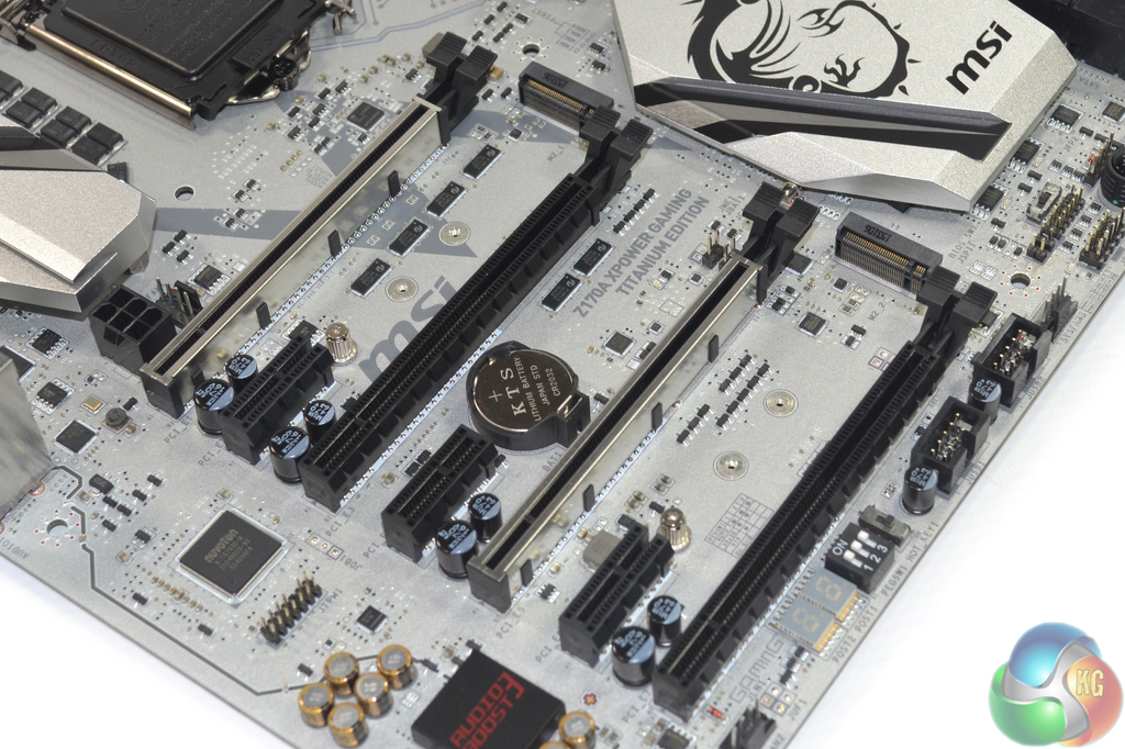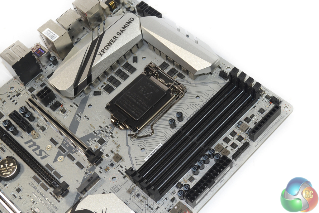 It is worth highlighting how clean and unobtrusive the CPU socket area is. MSI makes use of numerous low-profile Hi-C capacitors rather than the standard, tall can-style capacitors. This helps to minimise interference around the CPU socket when using large CPU air coolers, or more importantly, when trying to insulate the socket area for use with sub-zero cooling techniques.