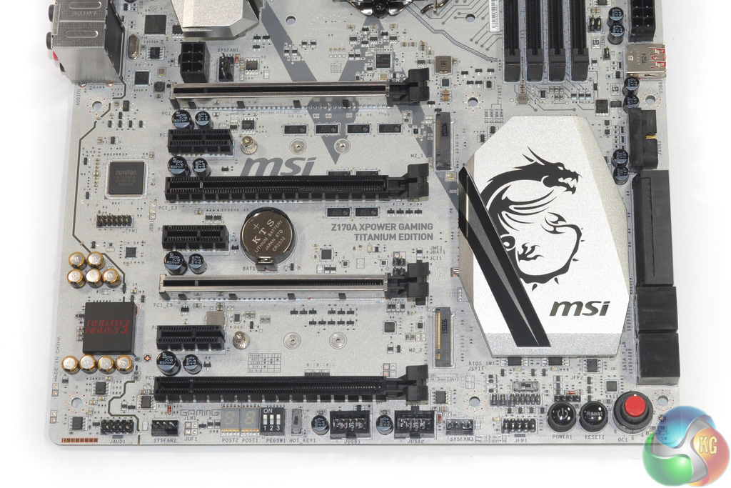 Four single-latch DIMM slots provide support for up to 64GB of DDR4 memory in dual-channel mode, with MSI stating frequency support of up to 4000MHz via overclocking (although higher may be obtainable, depending on the CPU's IMC strength). The board uses isolated circuitry for the memory paths in order to minimise signal interference, and this seems to have worked based on a DDR4 frequency world record that the Z170A XPower Titanium has previously taken.