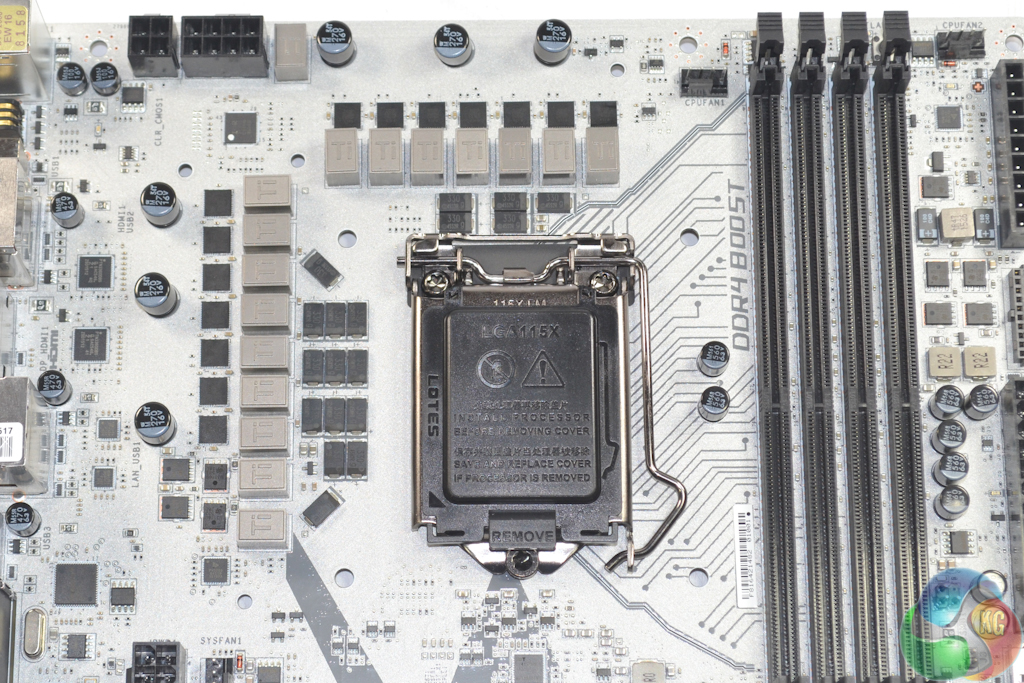 Central to the board is its standard LGA1151 CPU socket. No fancy LGA 2011v3-esque pin enhancements here, just a standard socket that is fed by an 8-pin and a 4-pin power connector to provide ample power for an overclocked Skylake CPU.