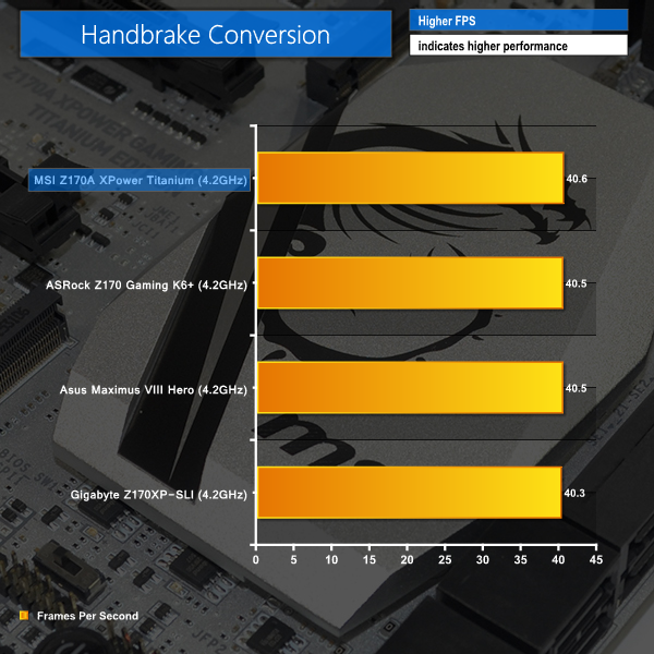 Cinebench and Handbrake conversion numbers are boosted by the inaccuracy of MSI's default BCLK resulting in a higher CPU and memory speed.