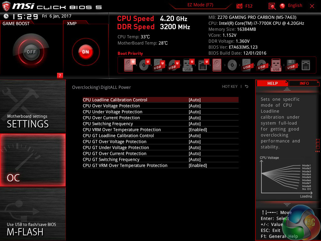 I am pleased to report that MSI has updated its Load-line Calibration settings to make them clear and functional. Nine different options can be selected and MSI smartly uses a simple graph to show how the voltage changes based on load. Simple, yet functional. And it certainly aided the simplicity of our overclocking attempts.
