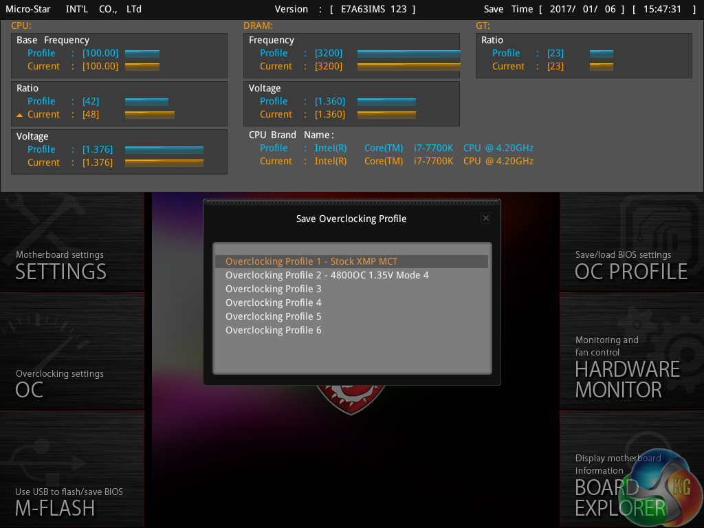 This tool is a superb graphical method of displaying how the system will change compared to its current state. It would be great to see MSI also roll this out to the more mundane OC Profile section. Either way, the graphical display is certainly a positive for MSI's UEFI over its competitors'.