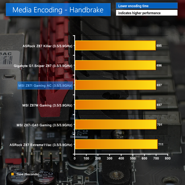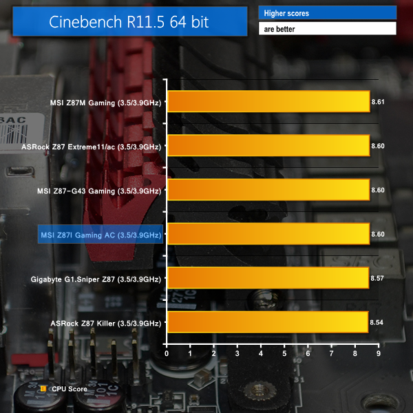 CPU-led performance is as we would expect from an LGA 1150 motherboard. Despite its diminutive form factor, MSI's Z87I Gaming AC provides performance numbers that are typical of a 4770K CPU.