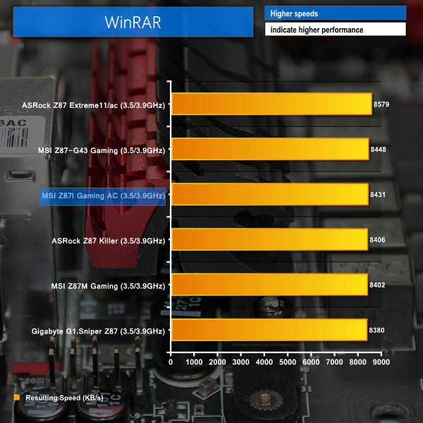 WinRAR’s built in benchmark and hardware test can help us outline the performance differentials between each motherboard.