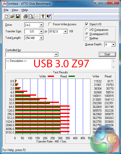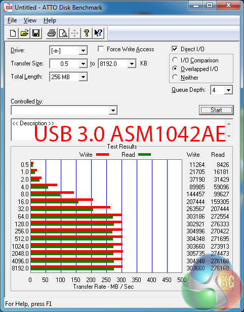 We tested USB 3.0 performance using the Kingston HyperX 3K SSD connected to a SATA 6Gb/s to USB 3.0 adapter powered by an ASMedia ASM1053 controller.