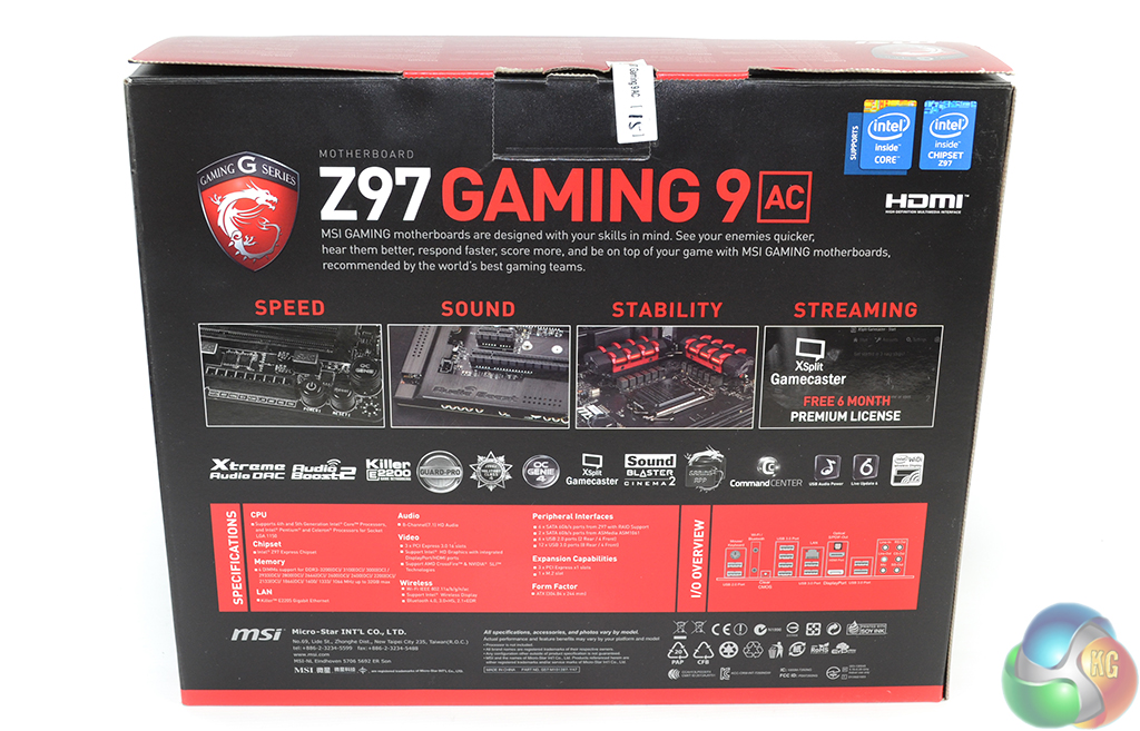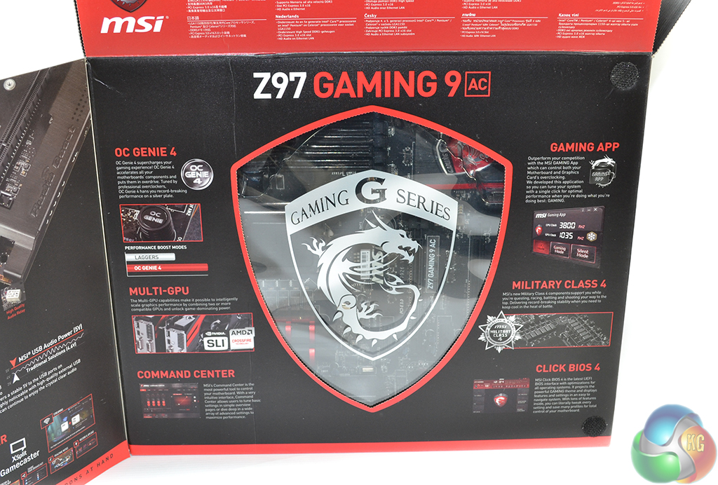 MSI ships the Z97 Gaming 9 AC in packaging colours that we have come to expect from the company's Gaming series components.