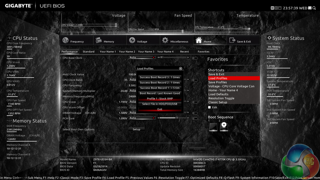 Up to six OC profiles can be saved and named. This is a good number to provide as it gives users flexibility when testing out different overclocking configurations. Profiles can also be imported and exported from or to a USB drive for backup and sharing purposes.