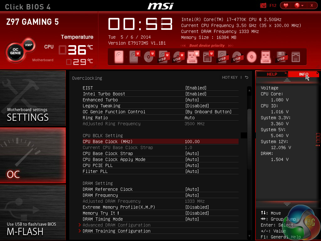 One of the actions that MSI has taken to tidy its UEFI is adding an Info section on the right side. The section is used to display basic information relating to voltages, irrelevant of the parameters that are being tweaked.
