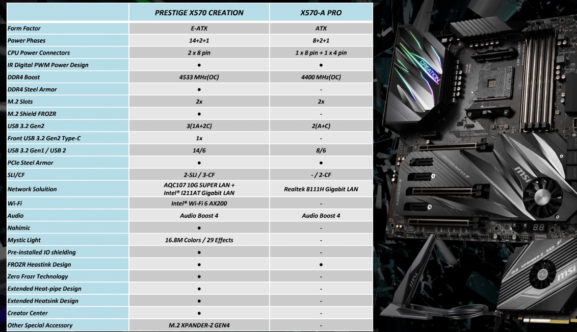 One theme of Computex this year has been a push towards appeasing the ‘content creation' market. We have seen this with Nvidia's RTX Studio initiative and Intel has been pushing in this direction with Intel 9th Gen. MSI will be supplying motherboards geared towards this market segment too, with the Prestige X570 Creation and X570-A PRO motherboards.