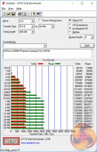The ATTO disk benchmark is a Windows-based utility for testing storage performance of any storage drive or controller. We use the default benchmark setup.