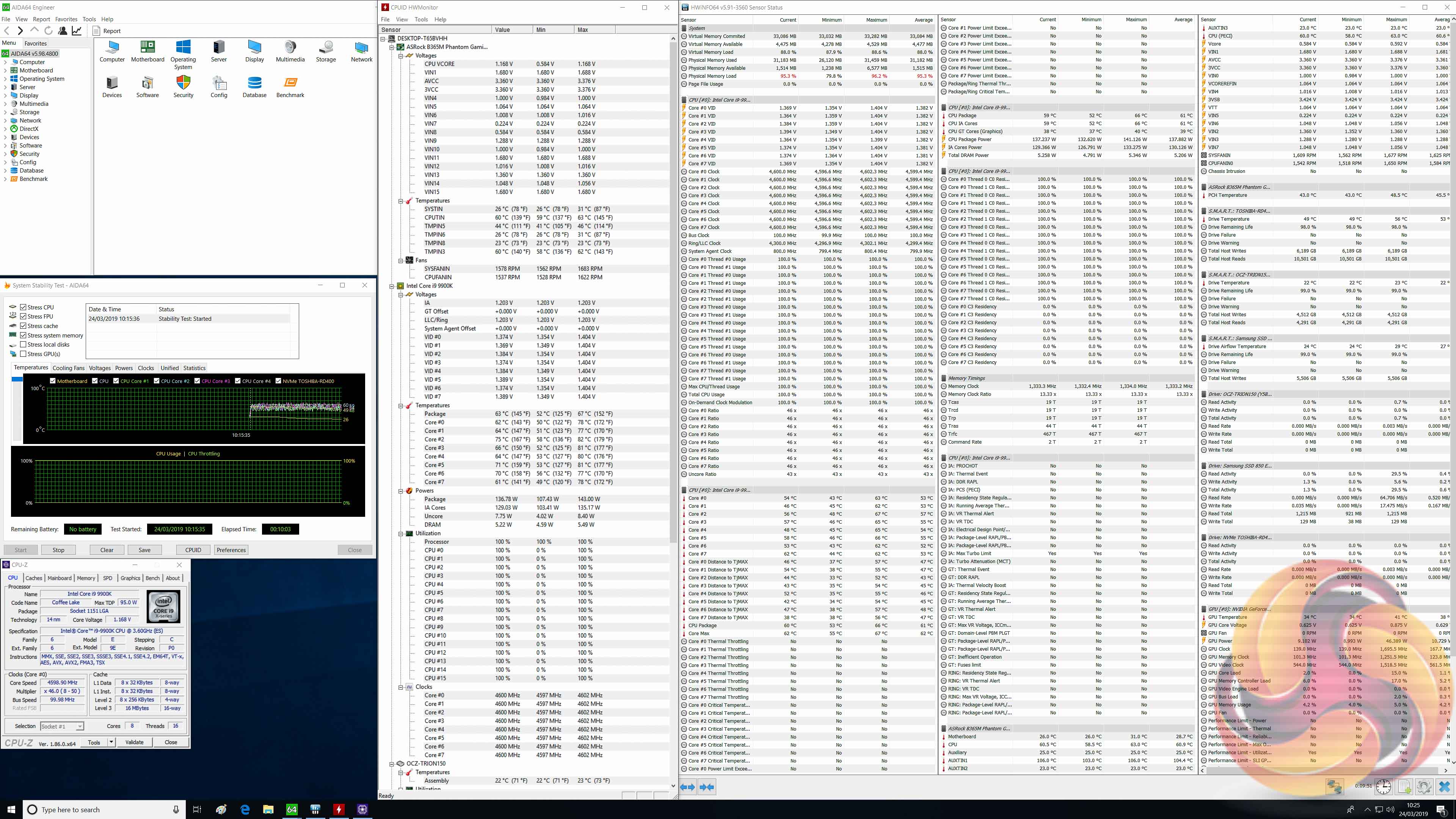 Raising that power limit to an absurdly high level in the UEFI BIOS results in the CPU having a stable long-term all-core Turbo of about 4.6GHz with a 1.28v VCore, CPU power consumption is around 160-watts.